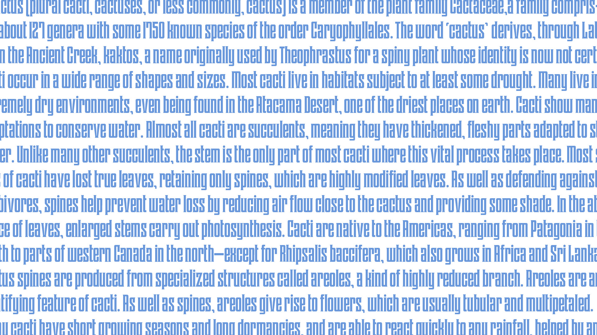 When I initially started designing this typeface, it was a revival of a metal face named Herald from the T.J. Lyons Collection. Herald however was much more sharp edged, and irregular. In the processes of moving little anchor points around to make this, I found myself gravitating a lot more towards softer rounded curves. For Cactus, I focused more that soft quality while emphasizing a strong elongation of the letterforms. Even though there is a lot of roundness, there are no big curves. This typeface is named Cactus because of the cacti-like counter forms and negative spaces between letters.